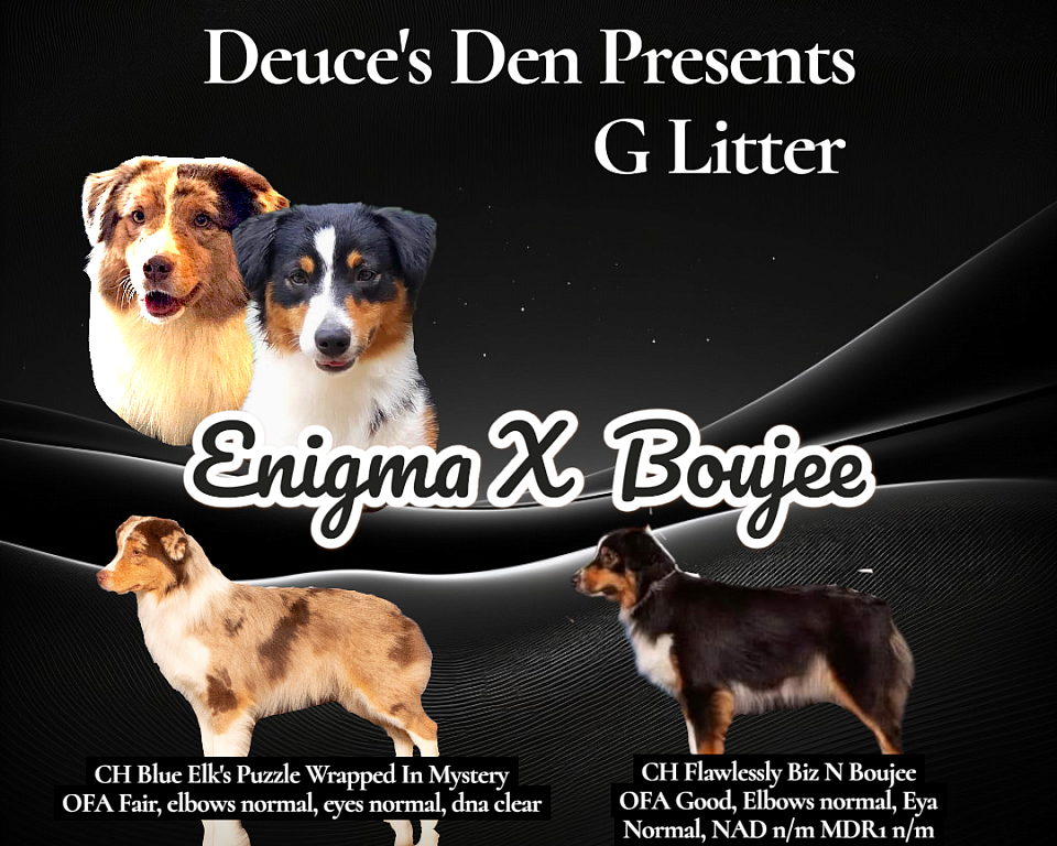 10/22/23 - MAS "A" LITTER - CH Flawlessly Exploring Destiny CGC FDC X CH Blue Elk's Who Done It. (Co-bred litter)